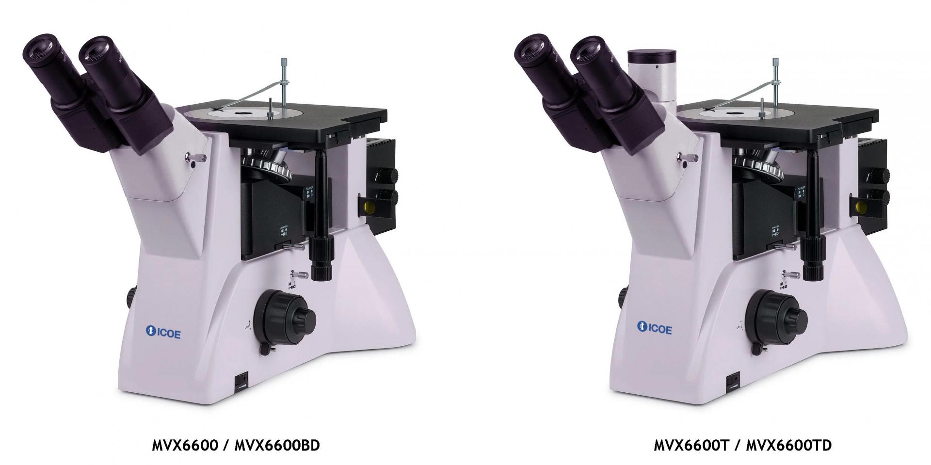 darkfield (ICOE MVX6600BD & MVX6600TD), and polarization microscopy techniques.