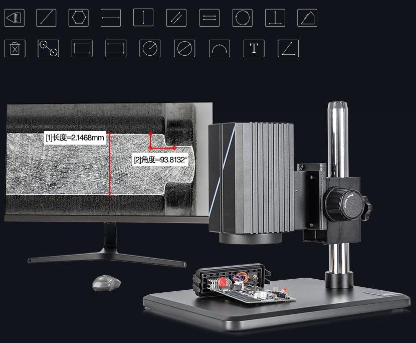 18 sets of professional measurement tools, no computer required, calibration-free data, measure anytime, anywhere using the software displayed on the screen, measure multiple sample features in real-time images and save the results along with the image. Data acquisition is just a click away.