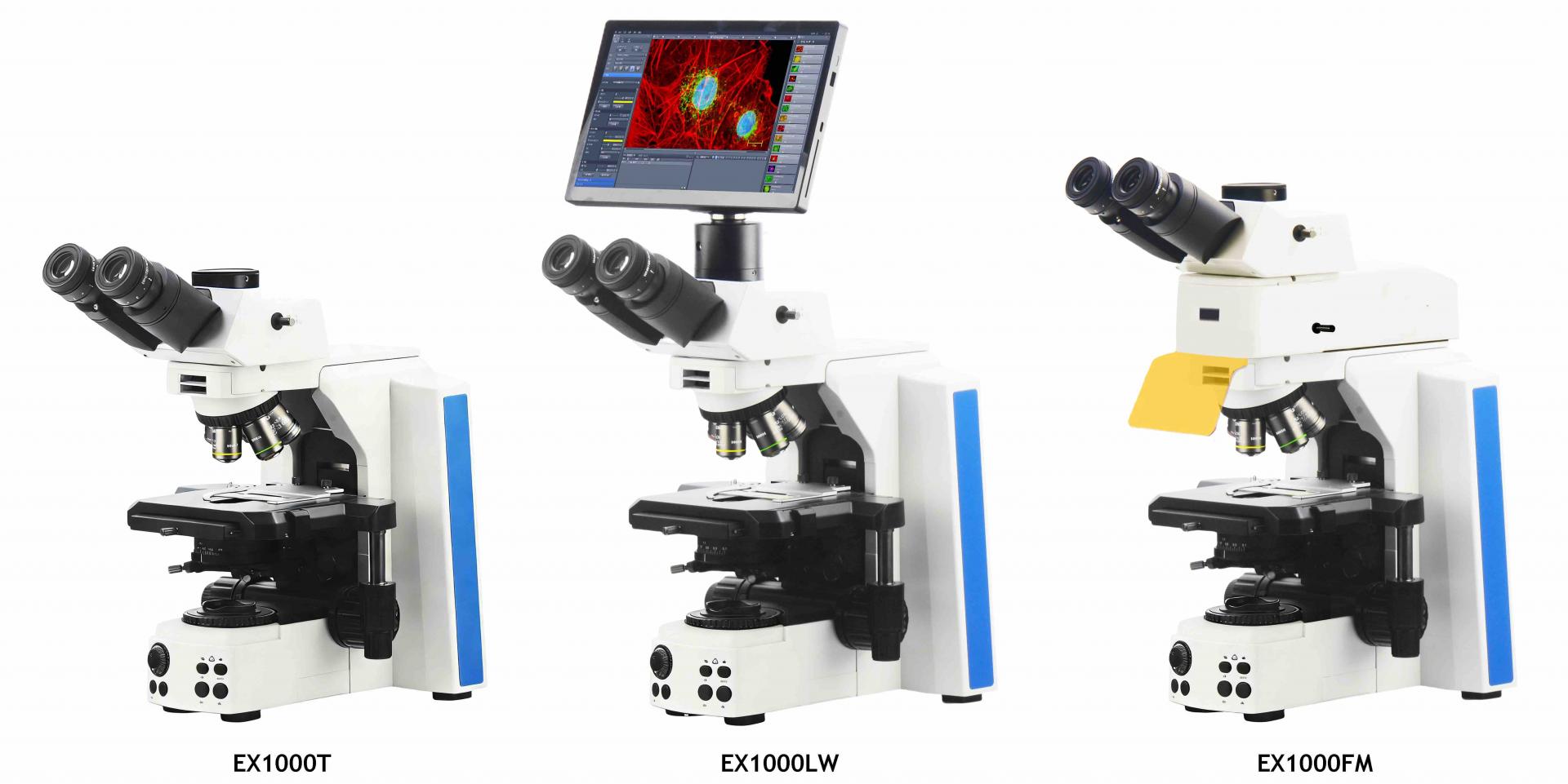 | Fluorscent attachment: | “FM” LED Epi-fluorescent Attachment, supplied with 10W Epi-fluorescent illumination device including 4 channels (3 channels for fluorescent cubes and 1-channel for brightfield observation) and a UV protection shield; Instant on-off, no need waiting of pre-heating or cooling. remember light intensity of each color light source; Light source synchronous switching with filter groups. | ○ | ○ | • | ○ |